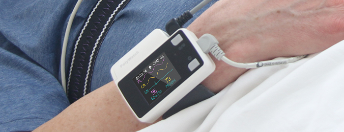 The device is light, easy to wear, has friendly human-computer interaction and a real-time screen displays waveforms and parameters.